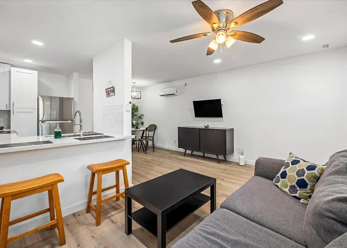 L'Appartamento Comfy Montrose Flat Near Midtown Games Desk Wifi offre agli ospiti un salottino, un soggiorno e una cucina, oltre a comfort moderni come un impianto di climatizzazione. In quest'appartamento, gli ospiti potranno usufruire di asciugacapelli, un essiccatore e asciugamani nel bagno. Inoltre, sono presenti un bagno con WC separato e una doccia.